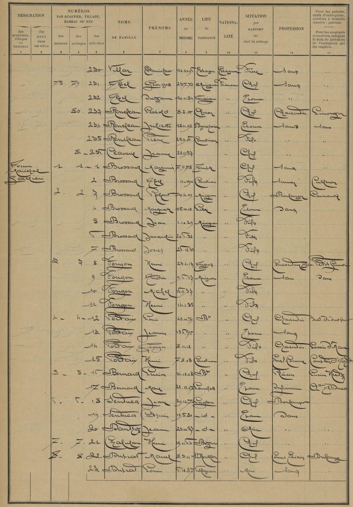 Le deuxième axe exploré par le SLIDERS_lab touche ainsi à la fabrique des identités, avec, dans l’installation Lignes de temps, l’exposition de feuilles de recensement datées de 1936, soit quatre ans avant l’instauration du régime de Vichy. La machinerie mise en avant ici n’est pas technique, c’est même la seule salle de l’exposition où l’on ne rencontre pas d’appareils. Elle est administrative. La feuille agit d’abord comme un dispositif de capture : elle prélève des fragments d’existence (nom, âge, profession, adresse) et transforme une présence en trace durable, autrement dit en preuve administrative. Dans un second temps, elle agit comme une norme, en commandant la forme des réponses. En filigrane, l’intitulé même des cases impose une structuration implicite de la société : le « chef » (ou chef de ménage/chef de famille) et la situation des autres membres du foyer par rapport à lui ; la profession, et, pour les employés et ouvriers, la mention du patron ou de l’entreprise, qui inscrit la dépendance dans l’écriture même du document. Enfin, la feuille de recensement est une machine de classement susceptible d’enclencher une machinerie du pouvoir : elle rend la population lisible à distance, sous forme de séries, de tableaux, de catégories. Par sa propension à produire des agrégats et des comparaisons, elle outille l’action publique (logement, urbanisme, scolarisation, politiques sociales, équipement des territoires), en fabriquant ces « regards abstraits » dont les administrations ont besoin pour gouverner.