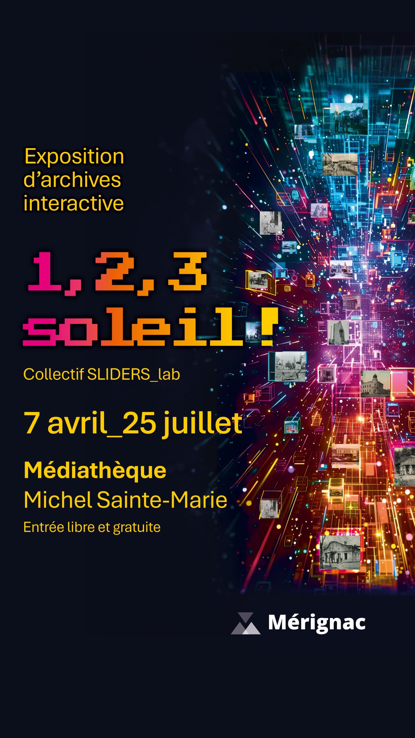 L’enjeu du regard porté par le SLIDERS_lab sur l’archive de Mérignac, à travers l’exposition 1, 2, 3 soleil !, se joue dans un double mouvement : interroger ce qui a été conservé, et les raisons (institutionnelles, politiques, pratiques) de cette conservation ; mais aussi, puisque toute archive[1] dessine une mémoire autant qu’elle la limite, repérer ce qui a été laissé de côté, oublié, minoré, voire rendu illisible. Il serait en effet trompeur de considérer l’archive comme un dépôt neutre. Archiver, c’est sélectionner, classer, nommer, hiérarchiser, et organiser les conditions d’accès : autant d’opérations qui orientent ce qui pourra faire récit. Dans Mal d’archive, Derrida mobilise la figure de l’« archonte » pour désigner ceux qui détiennent l’autorité sur l’archive, en assurent la garde et en régulent l’interprétation, parce qu’ils en fixent aussi l’ordre et la loi. Dès lors, travailler sur une archive, comme visiter une exposition qui la met en jeu, n’a rien d’innocent : ce qui s’y joue, ce sont les cadres de visibilité et les régimes de légitimité qui permettent à certains récits de s’imposer, au risque de reconduire une « grande histoire » au détriment d’histoires latérales, dissonantes ou incommodes. C’est précisément sur cette trame, souvent présentée comme évidente, que le SLIDERS_lab a choisi de poser un regard décalé plutôt que frontal, afin d’en faire apparaître les aspérités, les zones grises et les points de friction.