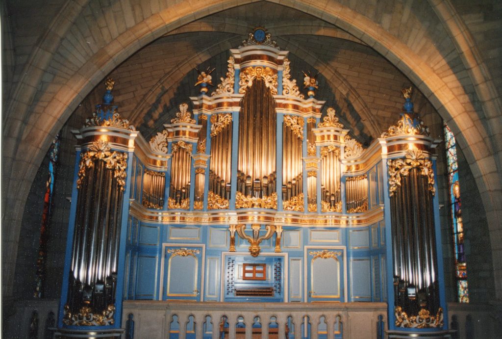 L’orgue est de facture baroque germanique, unique en France par sa polychromie bleue et or. L’écusson central du buffet quant à lui, porte la devise « S D G – Soli Deo Gloria » (« À Dieu seul la gloire »).