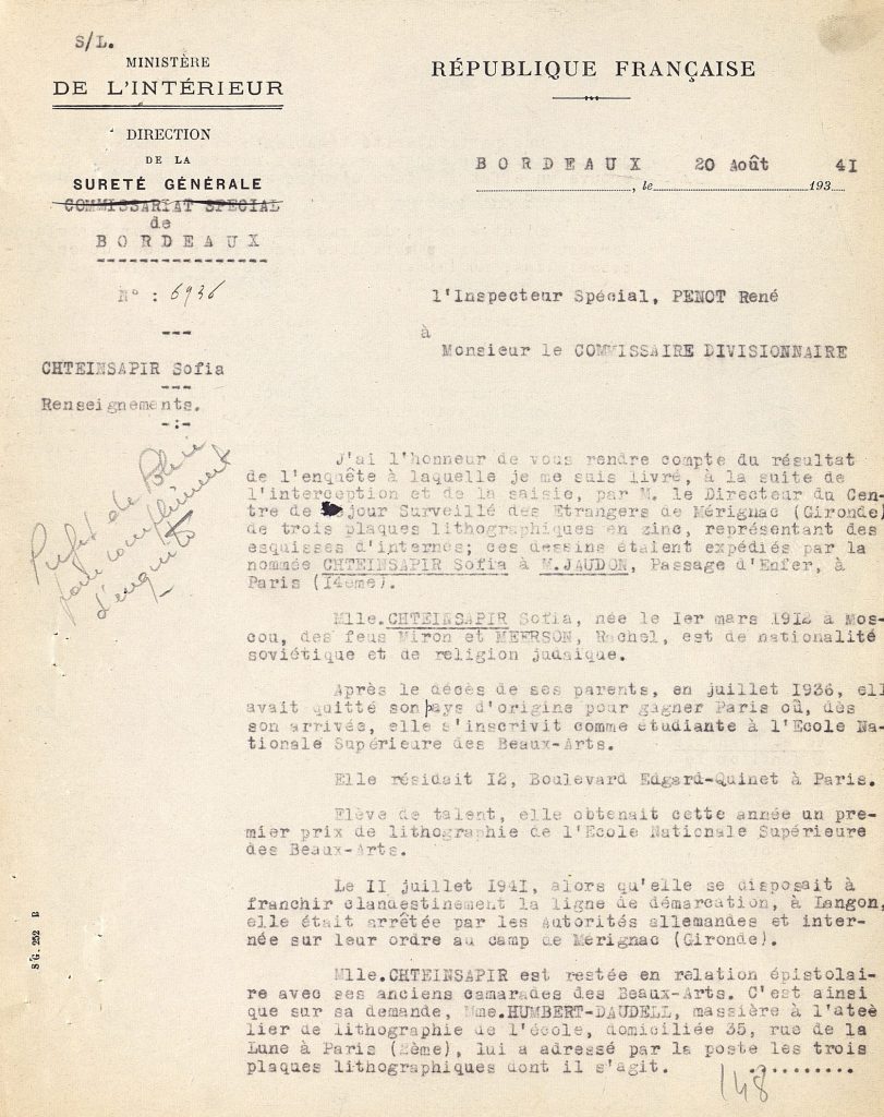 ABOUT (Ilsen), Musée d’art et d’histoire du Judaïsme, « Sonia Steinsapir. Itinéraire et archives d’une artiste en exil », conférence du 16 mai 2024 au Musée d’art et d’histoire du Judaïsme, mise en ligne le 30 mai 2024, Youtube, 1 : 26 : 38, [en ligne], consulté le 12/12/2025.